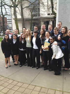| Champions on mat, court, stage and classroom Editor's Note: While we work hard to gather information for all students at all schools in the Memo circulation area, we recognize this round up is not comprehensive. You can help by sending word of achievement at your school and by your students to editor@midcountymemo.com any time and especially at the close of each academic quarter. Academic All Stars The Dairy Farmers of Oregon recognize athletic teams that earn a 3.0 GPA or higher. Winter sports teams in our area making the top ten list are the boys basketball team at Portland Christian High School ranking 4th in the state among 2A schools with a 3.52 GPA and the Reynolds wrestling team which carries a 3.37 GPA, placing them 4th among 6A squads. Basketball City Christian High traveled to Baker for the 1A boys state tournament and came home with the championship trophy by defeating Jewell 66-63, Triangle Lake 84-68, Columbia Christian 55-38, Elkton 53-52, and Horizon Christian 41-39. Senior Mikey Chown was named player of the game in the championship game and was named to the all tournament team. Jordan McNack, also a senior, earned 2nd team honors. This is the first state title for Lions boys basketball. The City Christian girls team advanced to the quarterfinal round in Baker by virtue of wins over Country Christian (43-36) and Triad (49-34), but suffered their first loss to Hosanna Christian (44-41) and were sent home by Triangle Lake (73-60). Senior Abby Lewellen was named 2nd team all state. Both teams brought home the tournament sportsmanship trophy. The school also earned the spirit and enthusiasm award. With a 6-4 Mt. Hood Conference record, the David Douglas boys basketball team earned a slot in the 6-A state tournament bracket. They beat West Salem 44-42 in the first round, but were ousted by Southridge 53-51 in the second. Coach Chad Reeves was named Mt. Hood Conference co-coach of the year and Scots senior Steven Wallace was named all conference 1st team. The Reynolds Raiders girls faced Clackamas in the first round of the 6A tournament, but failed to advance losing 56-21. The Portland Christian girls made a one-game appearance in the 2A tournament losing 61-29 to Western Mennonite. Cheerleading The Scots cheerleaders earned the 4th place trophy at the 6A/5A large team state competition for David Douglas. Dance/Drill Mid-county teams did well at the annual at Memorial Coliseum competition. Parkrose placed 3rd, David Douglas 8th and Reynolds 9th in the show division. Mick Sprague, of Parkrose, placed 5th in the drill down competition. Mock Trial