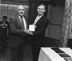 Aldo Rossi receives the first Agri-Business of the Year Award in 1988 from then Portland City Commissioner Bob Koch at the inaugural Northeast Portland Mid-county Memo Community Awards.