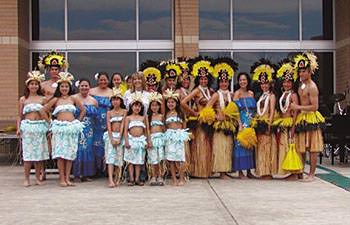 | Parkrose Community Fair co-ordinator Kelly Jones, (middle without costume) poses with the Na Hawaii Dance Group after their performance held Saturday, May 18 at Parkrose High School Community Center. |