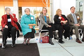 It was an Olympian effort, announced a beaming DeMaster, peering out over a crowd of about 150 well-wishers at the grand opening of Phase I of the complex on Feb. 13. While we don't actually win a gold medal, we will be giving away our golden shovel in a few minutes. At the end of her speech, DeMaster handed a gleaming shovel to Dan Valliere, chief executive officer of REACH Community Development, the community development corporation that is building a 60-unit building for seniors that will open in March 2015. Valliere and his crew valiantly broke ground on a chilly sunlit morning that held promise for the thousands of people in Portland who daily pan for the precious gold of affordable housing. The stage at the grand opening of Phase I of the new Glisan Commons building was filled with politicians, nonprofit directors and bank lenders-all lauding the new facility-expected to be the newest gem in the Gateway Regional Center Urban Renewal Area crown. Carla Piluso, Human Solutions board chair, hosted the event. She quoted a line from a Charles Dickens novel, whose stories described the plight of London's poor: Let us think of the poor in their chilly hovels, with bare tables, and of the yet more wretched objects, homeless wanderers in the open streets. That's what we're combating, Piluso said. What we combat each and every day and when we can do it in collaboration with others-REACH and Ride Connection specifically today-when we have the support of our communities, of our government, of our funders, we are making a difference. DeMaster stressed that the two-phase project has been years in the making. Phase I, which was completed this January, includes a $12.5 million, five-story, mixed-use building with 67 units of workforce housing, developed and managed by Human Solutions, a nonprofit serving low-income people which DeMaster directs. The units will be offered to people earning 30 to 60 percent of area median family income, or $15,000 to $30,000 for a single-family household. Phase I also includes 16,000 square feet of commercial space located on the ground floor, owned and operated by Ride Connection, a transportation service provider catering to seniors and people with disabilities. Its 45-plus employees will move into their new $6 million main headquarters there early this summer. Phase II is the construction of REACH's $9.4 million senior building, with affordable units for people 55 and over. Speaking passionately from the podium, DeMaster envisioned the new complex filling the gap of scarce affordable housing. One of the reasons that the number of homeless families is so high right now is that there are very few vacant units for low-income families to rent, she said. This shortage of affordable housing results in more families being homeless-and more families being homeless for longer periods of time. DeMaster stressed that the units Human Solutions is building will be for people in the workforce who will spend their paychecks at Gateway businesses. Because the complex is so close to bus lines and the MAX station as well as shopping areas and restaurants, the residents can choose to live without reliance on having an automobile, she said. For a low-income household where the cost of owning, repairing and maintaining a car can take a significant portion of your income, this is a marked advantage. The new building is also environmentally friendly she said, citing its Leadership in Energy and Environmental Design (LEED) Platinum rating, based on many energy conservation features, including a healthy indoor environment. Commissioner Dan Saltzman, who oversees the Portland Housing Bureau, told the crowd that not only will affordable housing be built but that we're bringing jobs to Gateway, too. Ride Connection, when they have their offices completed here, some 47 people will be working here. And when you're close to the MAX line like you are, when you have six or seven bus lines, this all helps add to the critical mass that I believe creates more success in the Gateway area. Saltzman added that the PHB provided several million dollars from its urban renewal money for housing to assist this project. Director Margaret Van Vliet from Oregon Housing and Community Services said her organization contributed tax credits and some grant funds to the financing effort. What I'm seeing statewide is that while we're coming out of the recession, the gap for affordable housing for people who need help the most is only growing, she said. Wages are not keeping pace with the price of real estate, be that homeownership or rental. We have more work to do. But she congratulated Human Solutions and its partners who faced stiff competition for very scarce resources, in her words. Jan Laskey, Senior Vice President of Community Development Lending at Bank of America Merrill Lynch, talked numbers to the crowd, noting her bank provided tax credit equity to both Human Solutions and REACH for almost $14 million. In addition, they bankrolled construction loans for about $17 million. The bank is also part of the Network for Oregon Affordable Housing, which provided a permanent loan of $1,885,052 to Human Solutions. We're very proud of that, Laskey said. It was quite a challenge bringing all this money together. She predicted the new complex would be truly amazing. It's so wonderful to see the properties, and imagine the lives that are going to be transformed in each of these places and imagine the community that's going to be here as people begin interacting and the senior housing and people meeting and Ride Connection really having a home. Elaine Wells, executive director of Ride Connection, said, Besides this wonderful new home for Ride Connection, we are very excited to be a part of the Gateway community. We look forward to becoming fully involved in the community and want to be good neighbors and good business partners. The three organizations are a logical fit to work together to serve our respective customer co